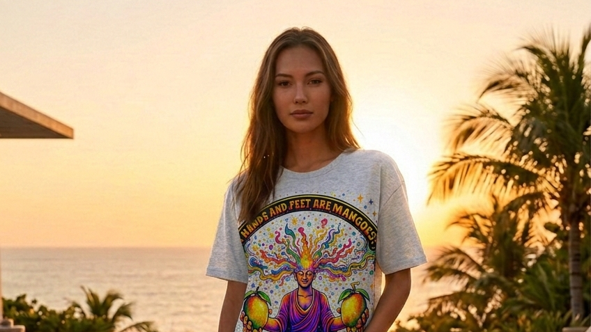 Sunrise Artwork T-Shirt — "Silent in Morning" Retro Psychedelic Dawn Tee